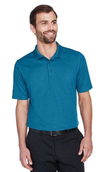 - Proprietary dual-sided mesh pique knit constructed of fine denier wicking polyester on the outside and soft-as-cotton wicking blend on the inside