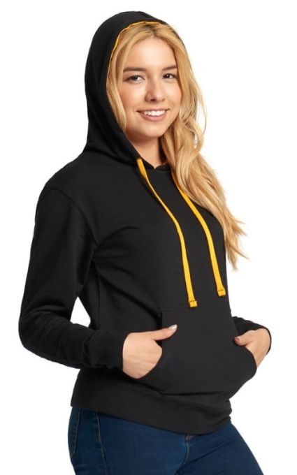 - Jersey lined contrasting and matching jersey lined hood & flat drawcords